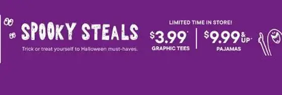 Limited time! Shop in store and get graphic tees for $3.99 & pajamas for $9.99 & up.