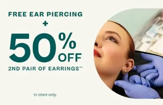 **Purchase device piercing earrings and get a free device ear piercing plus 50% off a second pair of regular priced earrings. Cannot be combined with any other offer. Excludes piercing earrings and prior purchases. Valid thru 10/19/25.
