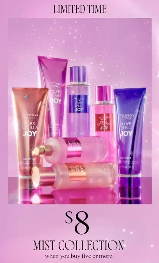 Limited time! Shop in store and get $8 Mist Collection when you buy five or more.