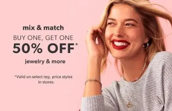 Don't wait! Shop in store and enjoy buy one, get one 50% off jewelry & more.