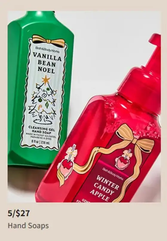 Hurry in & save! Shop in store and get 5 hand soaps for $27.