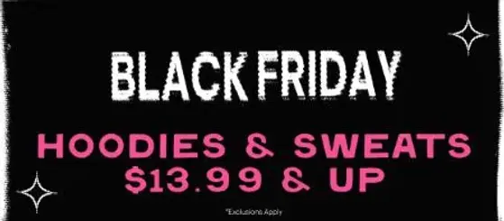 Limited time only! Shop in store and get $13.99 & up on hoodies & sweats.